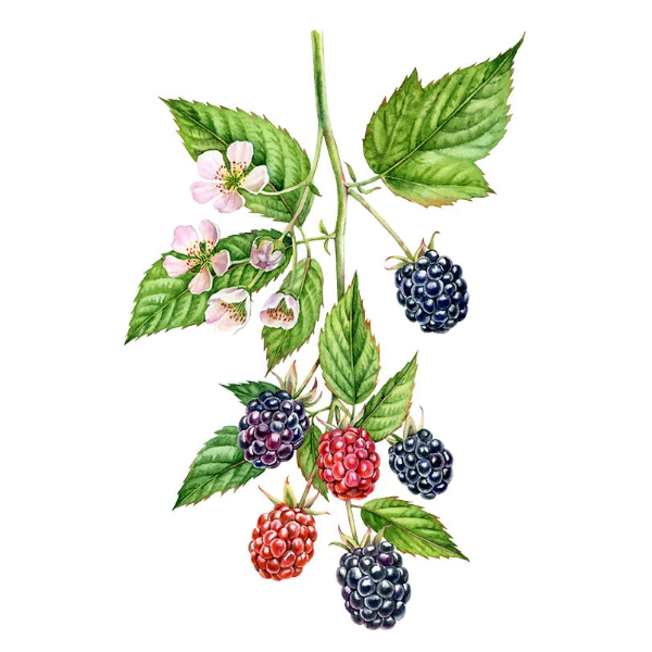 Blackberry root (*Rubus spp.*) has been traditionally used in herbal medicine for its potent astringent and anti-inflammatory properties. Rich in tannins, the root is particularly effective for addressing digestive issues such as diarrhea, dysentery, and gastrointestinal inflammation by tightening and toning the intestinal lining. It is often prepared as a tea or tincture to soothe digestive discomfort and promote gut health. Additionally, blackberry root has been used to alleviate sore throats and oral inflammation, as its antimicrobial properties help combat infections in the throat and mouth.