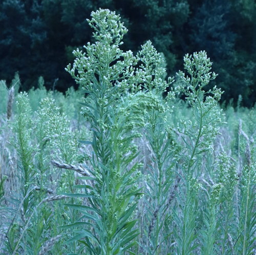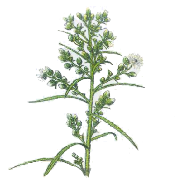 Canadian fleabane (*Conyza canadensis*), also known as horseweed, is a medicinal herb valued for its astringent, anti-inflammatory, and diuretic properties. Traditionally used by Indigenous peoples and herbalists, the plant is often employed to treat gastrointestinal issues such as diarrhea and dysentery due to its astringent action, which helps tighten tissues and reduce excessive fluid loss. Its anti-inflammatory effects make it useful for alleviating conditions like hemorrhoids and soothing irritated mucous membranes. As a diuretic, Canadian fleabane promotes kidney health by encouraging urine flow, aiding in the removal of toxins and the management of urinary tract infections.