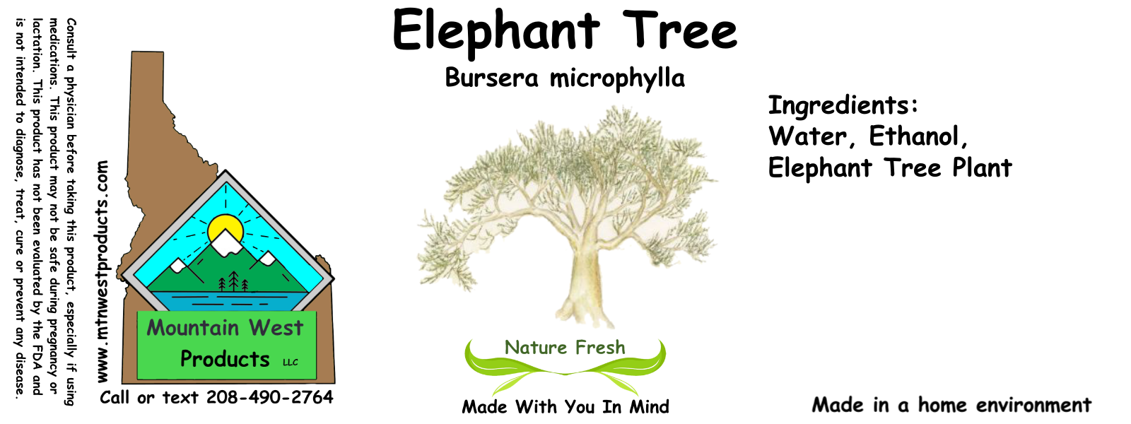 The elephant tree (*Bursera microphylla*), native to the arid regions of the southwestern United States and Mexico, has been traditionally valued for its medicinal properties. Rich in resinous compounds, the tree produces a fragrant sap that exhibits antimicrobial, anti-inflammatory, and astringent properties. This resin has been historically used to treat minor wounds, skin irritations, and infections by promoting healing and protecting the skin from pathogens. Additionally, it is often burned as incense for its calming aroma, which has been used in traditional practices to relieve stress, enhance focus, and promote a sense of spiritual well-being.