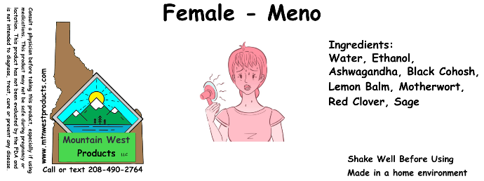 The Female–Meno formula blends a set of cooling, stabilizing, and deeply supportive herbs: Black Cohosh tempers vasomotor surges, soothing the sudden rise of internal heat; Sage reins in excessive sweating and helps restore clarity to the body’s thermostat; Red Clover offers gentle phytoestrogenic nourishment, easing the sharper drops in hormonal tone; and Motherwort steadies the heart and nerves, softening emotional spikes and tension. Ashwagandha lends grounding strength to the adrenals, easing stress-driven flashes and the tired-but-wired state that unsettles sleep, while Lemon Balmcools agitation, lifts the spirit, and calms the flutter of an over-stirred nervous system.