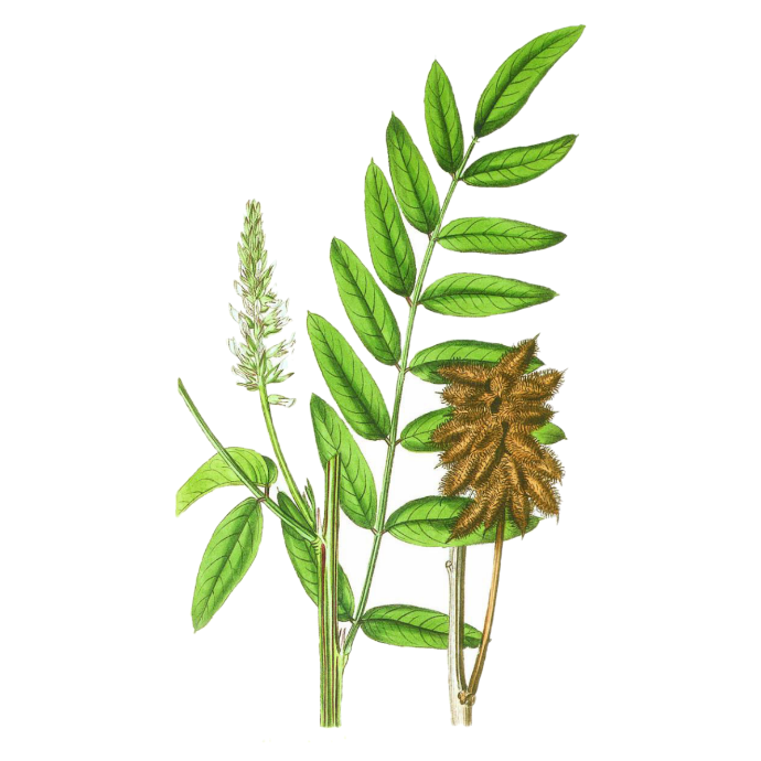 Licorice root (Glycyrrhiza sap.), rich in glycyrrhizin, offers potent anti-inflammatory, antiviral, and gastrointestinal benefits, making it effective in treating respiratory conditions, soothing ulcers, and promoting adrenal function. Additionally, it supports liver health, boosts the immune system, and helps balance hormone levels, alleviating symptoms of menopause and PMS.