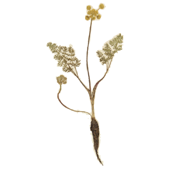 Lomatium, commonly known as biscuitroot or desert parsley, is a plant native to western North America and has been traditionally used for its medicinal properties by various Indigenous tribes. The roots of Lomatium species are particularly valued for their antiviral, antibacterial, and antifungal properties. Historical accounts and ethnobotanical studies highlight its use in treating respiratory infections, such as colds, flu, and pneumonia. The plant contains a variety of bioactive compounds, including coumarins and flavonoids, which contribute to its potent antimicrobial effects. Its use in traditional medicine often involved making teas, tinctures, or poultices from the roots to alleviate symptoms and support the body's natural healing processes.