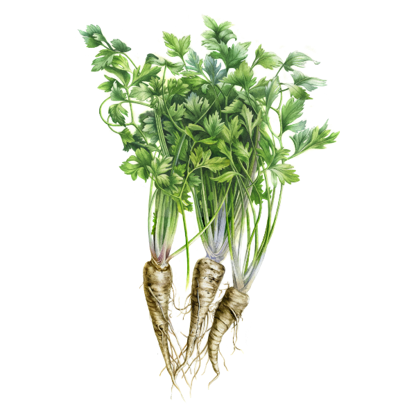 Parsley root (Petroselinum crispum), a less common but highly beneficial part of the parsley plant, is valued for its impressive health and medicinal properties. Rich in vitamins A, C, and K, as well as essential minerals like potassium, magnesium, and iron, parsley root supports overall health and immune function. Its high fiber content aids in digestion and promotes a healthy gut by preventing constipation and promoting regular bowel movements. Additionally, parsley root acts as a natural diuretic, helping to flush out excess fluids and toxins from the body, which can benefit kidney health and reduce bloating and water retention.
