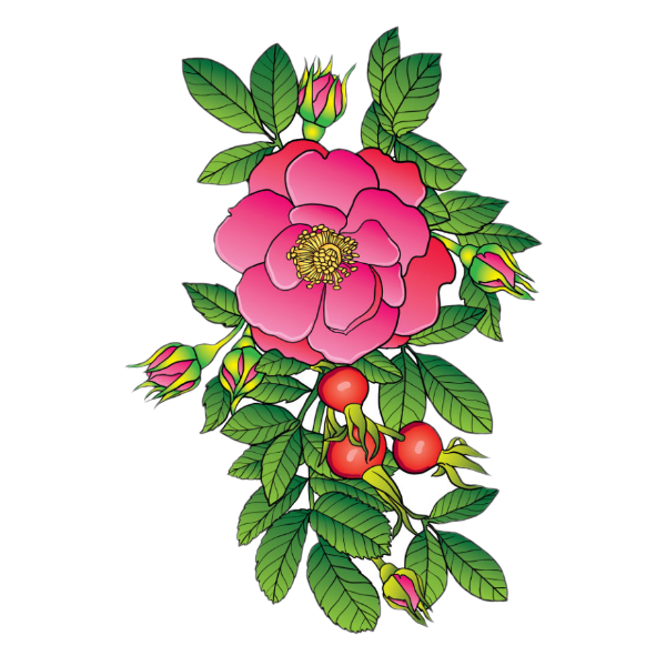 Rose hips, the fruit of the wild rose (*Rosa spp.*), are highly valued for their rich content of vitamin C and antioxidants, which boost immune function and combat oxidative stress. Traditionally used to prevent and treat colds, flu, and other infections, rose hips enhance the body's defenses while reducing inflammation. Their anti-inflammatory properties are particularly beneficial for managing conditions like arthritis, as rose hips have been shown to reduce joint pain and stiffness. Additionally, they support healthy skin by promoting collagen production, aiding in wound healing, and reducing the visible signs of aging.